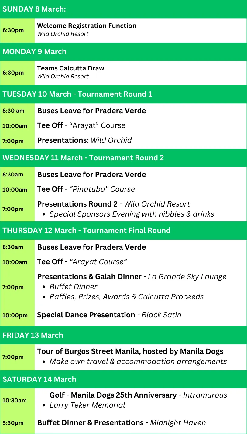 Tee - off from 10am SHARP each day.